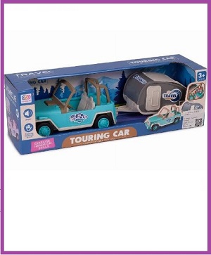 Coche descapotado camping con remolque caravana con luz y sonido, 40 cm.